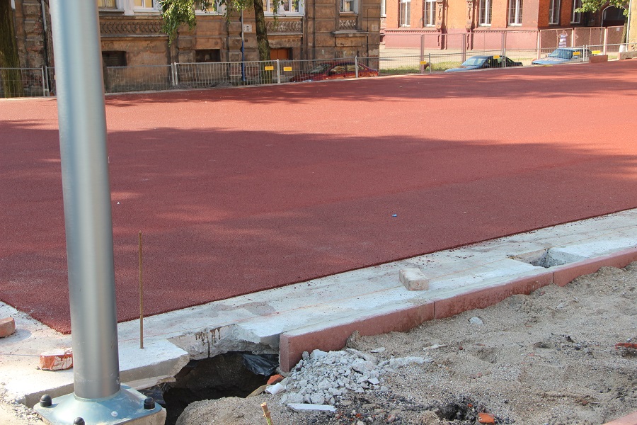 Полным ходом идут работы по обустройству современной спортивной площадкии сквера на ул.Пионерской. Уже установлены тренажеры, залито специальное покрытие.